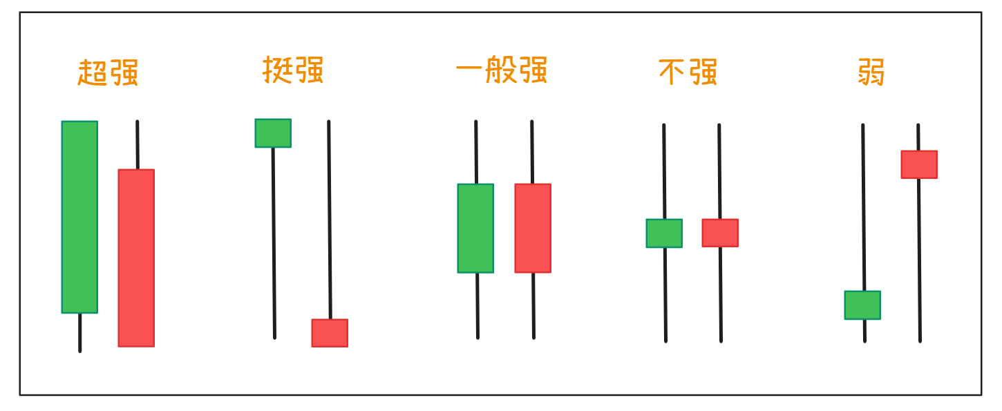 趋势 K 线根据阳线和阴线的不同,分为多头趋势 K 线和空头趋势 K 线。