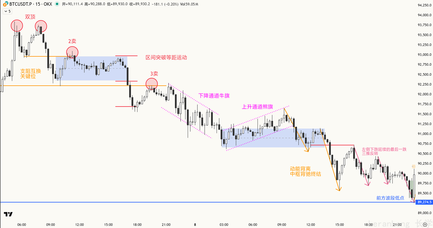 左侧是大的上涨趋势转为下跌,不能突破前高,且出现双顶,后续行情走的也非常标准,是一次非常好的机会。