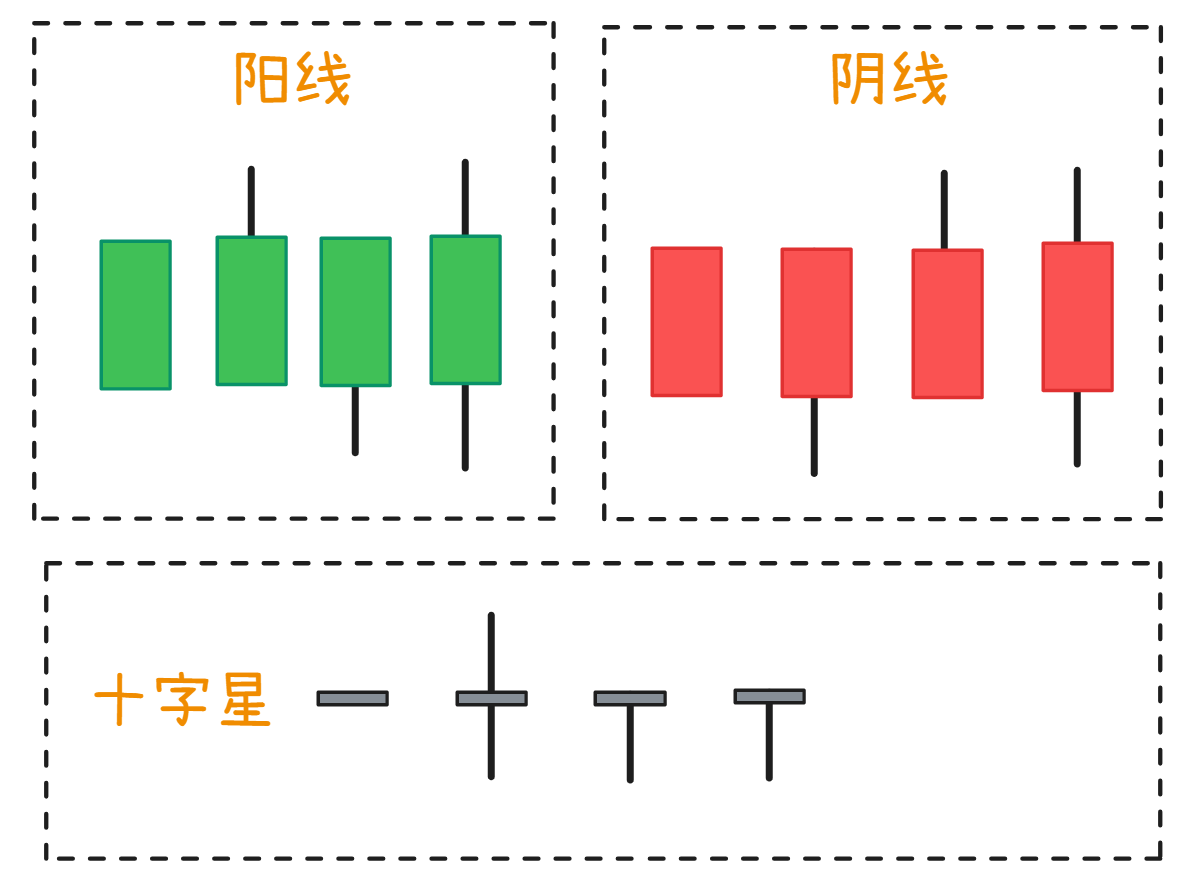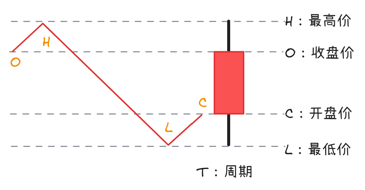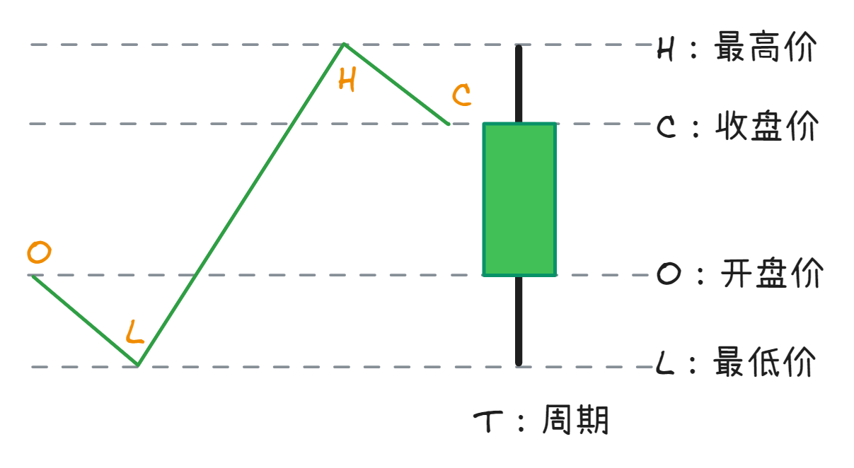 - K 线形成五要素:开盘、收盘、最高、最低以及时间周期。
