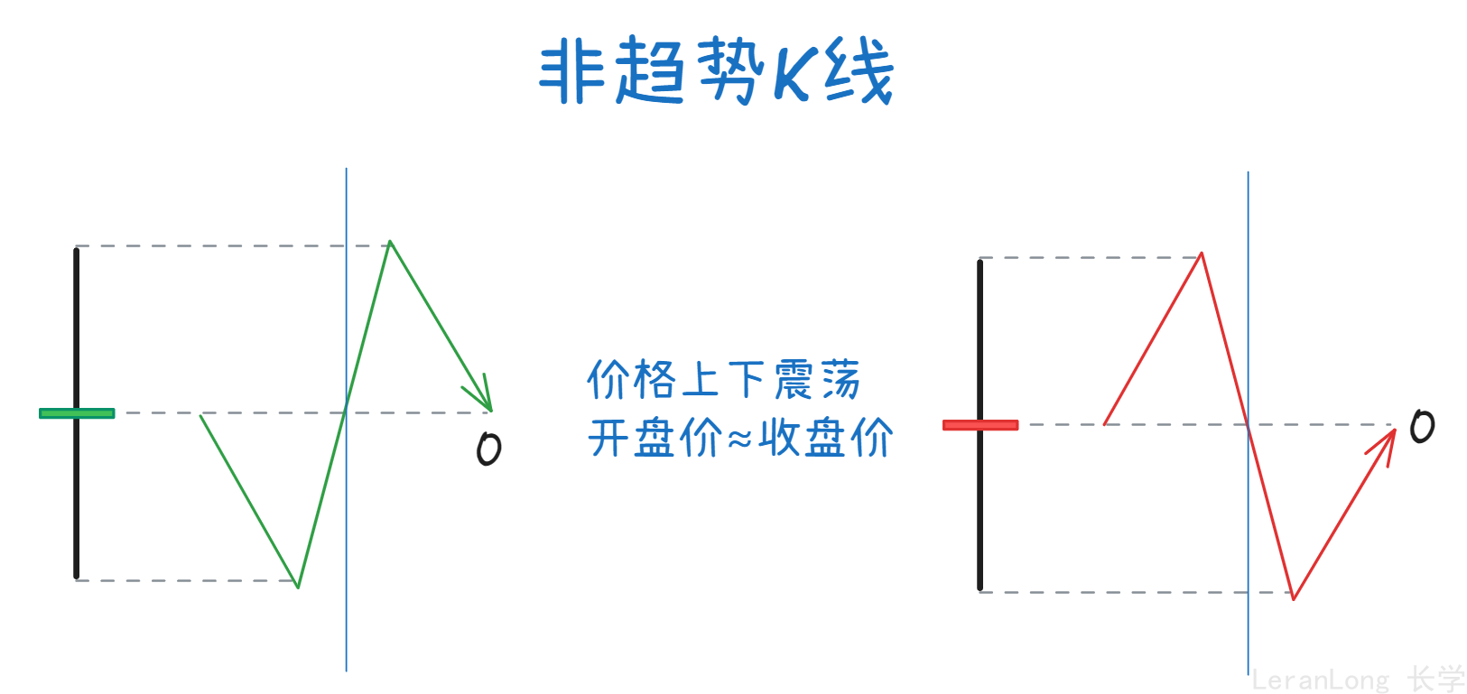 价格围绕着开盘价上下跳动,即价格无论向上运动或向下运动,最终都回到了开盘价附近。