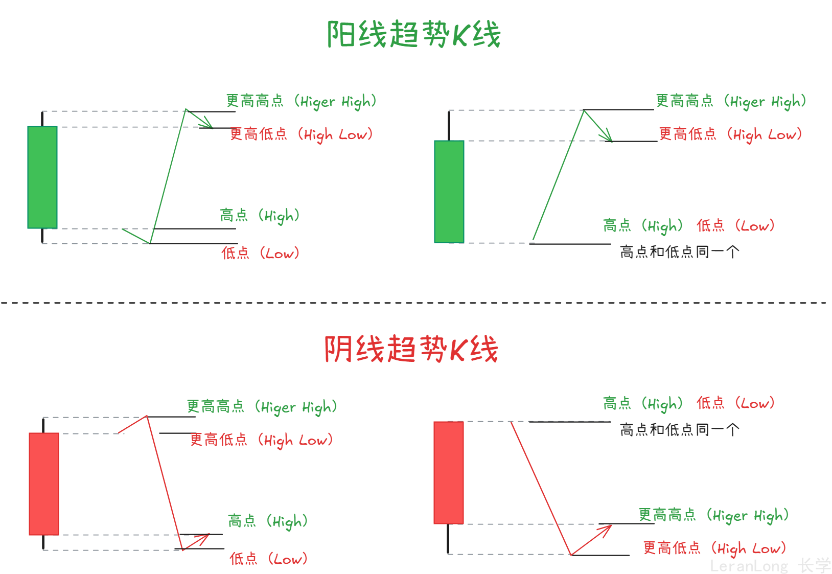 阳趋势 K 线:产生更高高点、更高低点就是阳线趋势 K 线